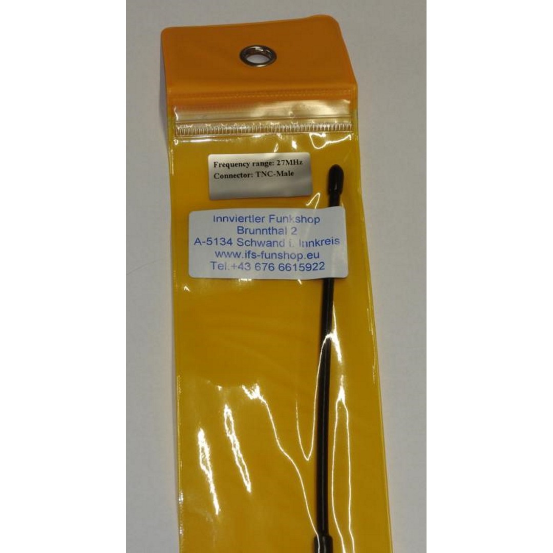 IFS-Hyflex - 27 MHz TNC-Aufsteckantenne mit 53cm Strahlerlänge. Der Strahler ist flexibel und hat einen eingebaute Fußpunktspule zur Anpassung.