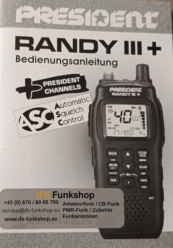 Bedienungsanleitung in Deutsch für das CB-Funkgerät President Randy III PLUS - im Original Pocket-Format