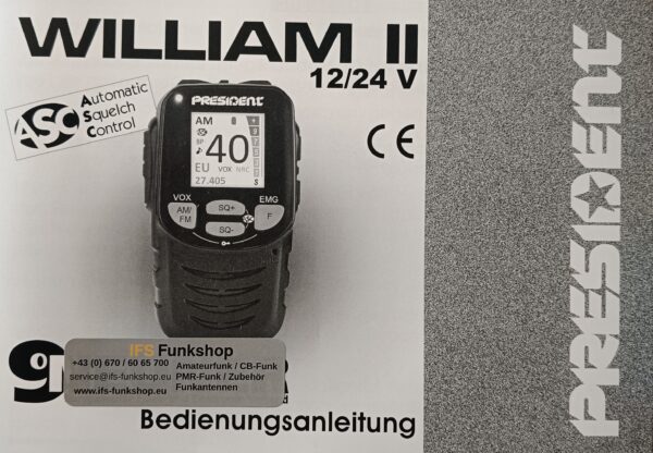 Bedienungsanleitung in Deutsch für das CB-Funkgerät President William II - im Original Pocket-Format