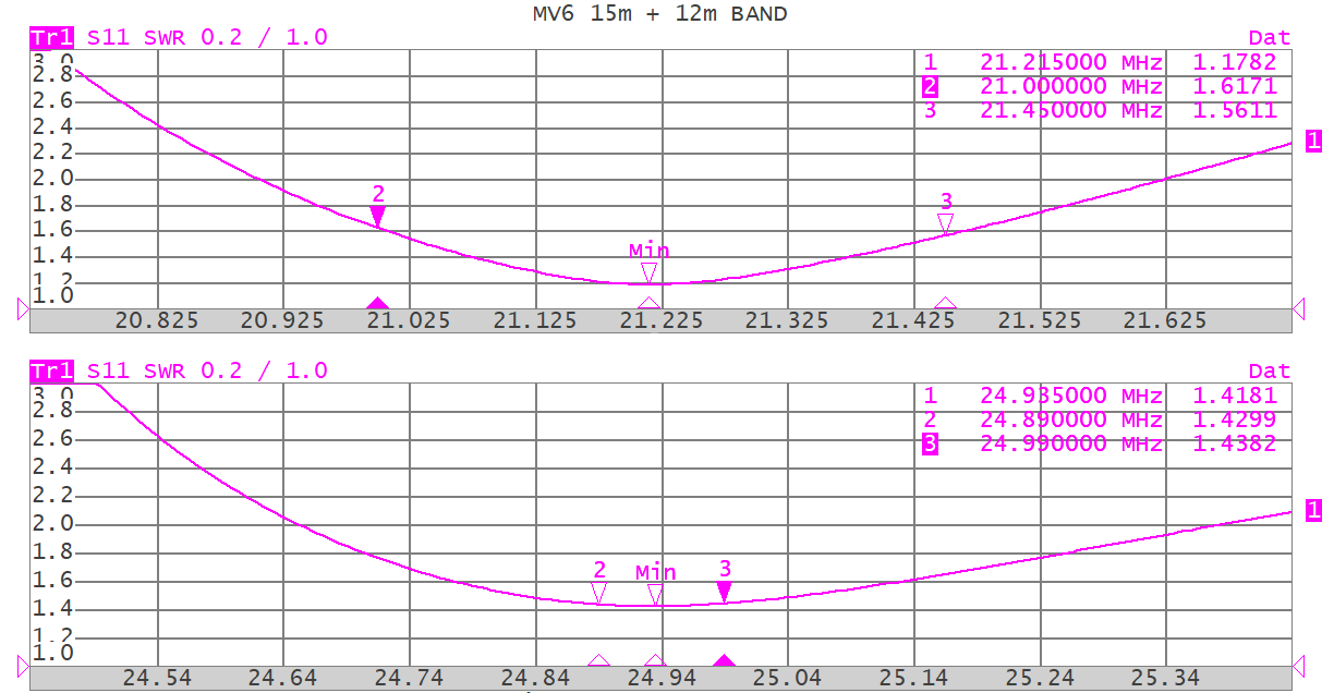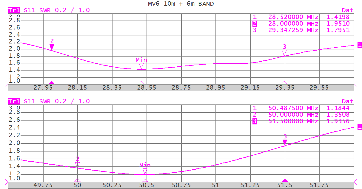 Basierend auf diesen Annahmen haben wir MV6 realisiert, das durch den Einsatz von Resonanzelementen parallel zum zentralen Stift (Stichleitungen) eine effiziente Antenne für alle abgedeckten Bänder ermöglichte.