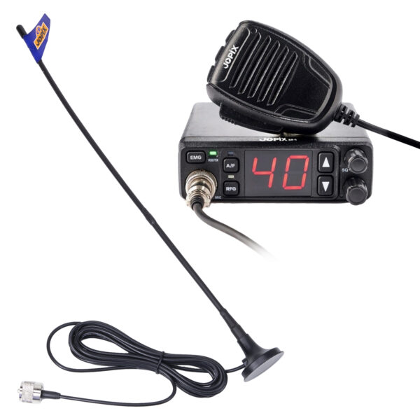 Das Jopix AP-7 ist ein CB-Funkgerät (27-MHz-Band, lizenzfreie Nutzung) mit integrierter Antenne. Es ist kompakt , verfügt über ein hintergrundbeleuchtetes Display mit 40 Kanälen, ASQ (automatische Rauschsperre) und ist für 12 V/24 V ausgelegt . Das Jopix AP-7 CB-Funkgerät wird mit der Jetfon MAG-7 Antenne mit Magnetfuß geliefert: einfach und effektiv .