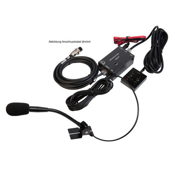 Für die Sprachübertragung stehen verschiedene Mikrofonvarianten zur Auswahl: Schwanenhalsmikrofon (M-1 oder M-2) für den direkten Fahrerplatz oder den Festeinbau in der Mittelkonsole sowie ein kompaktes Mini-Mikrofon (M3) für Pkw oder Büroanwendungen. Alle Mikrofone werden einfach an der MIC-Buchse angeschlossen.